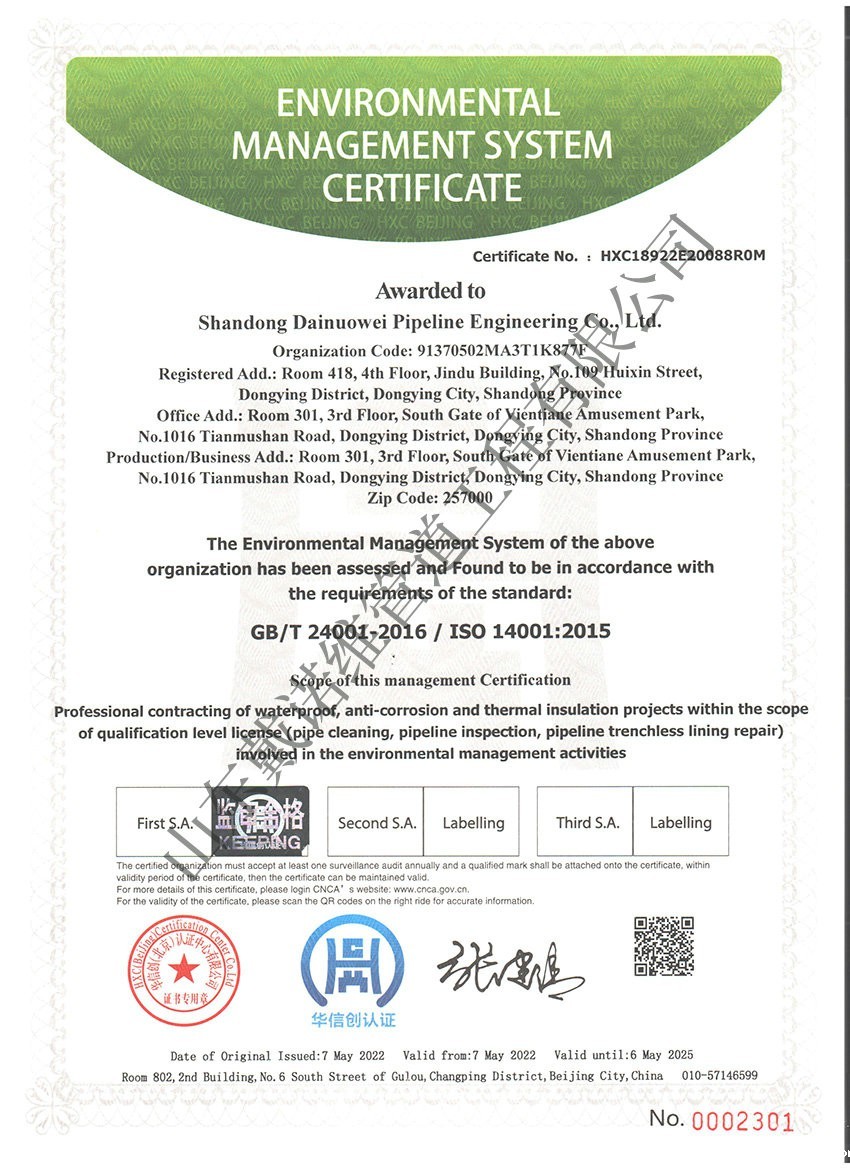 管道非开挖修复新利体育手机版app企业资质证书