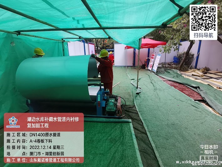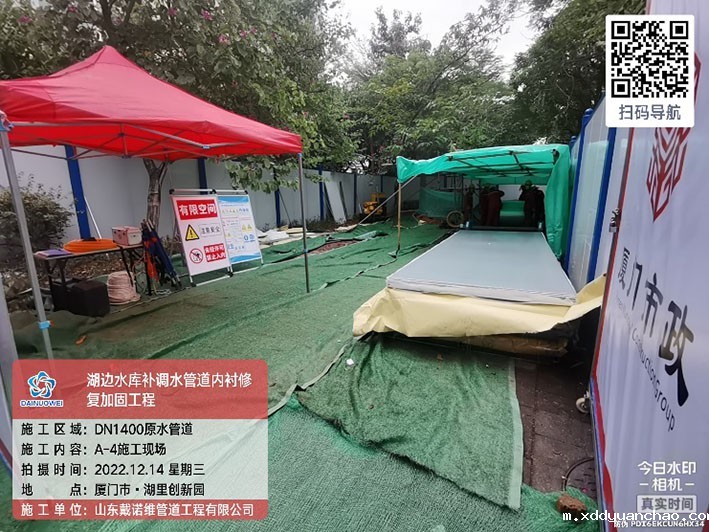 4.项目概况:湖边水库DN1400补调水管道全长8709.5m,起点为高殿水厂。湖边水库补调水管道设计输水能力20万m³/d,是保障厦门市岛内原水应急供应的重要管道。湖边水库补调水管道补调水管道自2010年1月投入运行,部分路段管道多次发生漏水或破管事件,因此本次对爆管频繁发生段管道予以修复。该现状管管径为DN1400,采用预应力II 级钢筋混凝土管(以下简称混凝土管)、钢管和球墨铸铁管埋地铺设,其中原管材为钢管或球墨铸铁的管段本次不予以修复。由于混凝土管段多次发生管道破裂、脱节及沉降事件,因此本次对混凝土管段予以修复,全长3568.55m。采用非开挖方式内衬不锈钢更新修复。